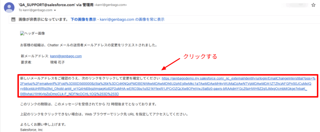 5.保存後、Salesforce から認証メールが送信されますので、メールを開き確認を完了してください