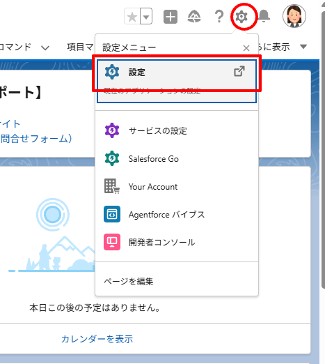 1.画面右上の歯車のマークをクリックし、 [設定] をクリックします